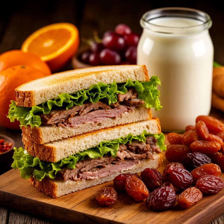 • Бутерброды из цельнозернового хлеба с листом салата и запеченным мясом.